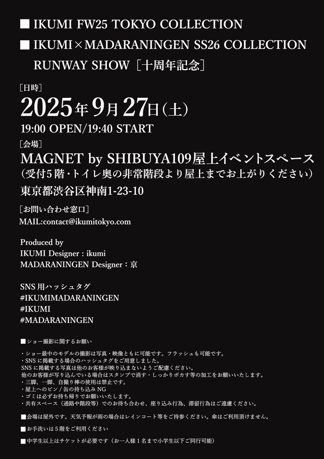 ◼️IKUMI×MADARANINGEN SS26 COLLECTION RUNWAY SHOW[十周年記念]